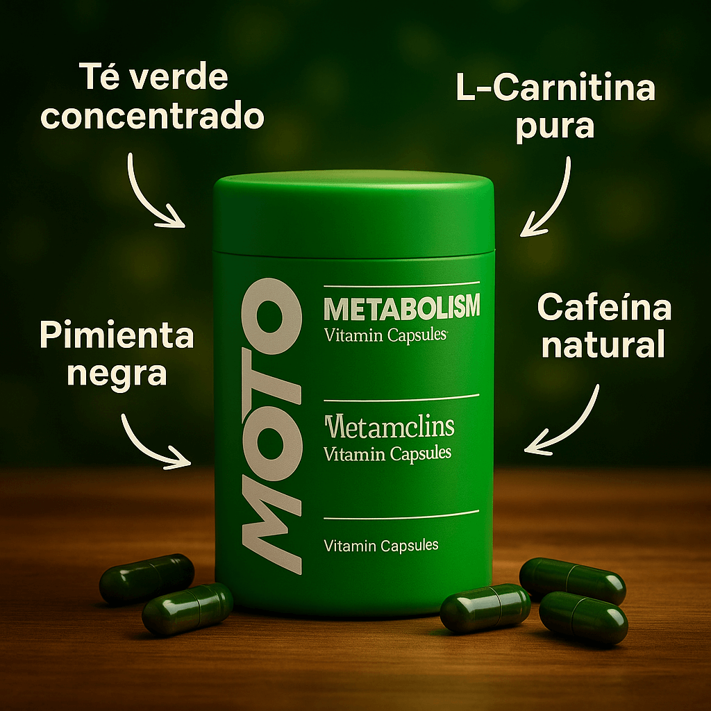 ✅Moto Metabolismo combina té verde concentrado, L-carnitina, pimienta negra y cafeína natural. Esta mezcla acelera la quema de grasa, convierte la grasa acumulada en energía y despierta el metabolismo que tu cuerpo dejó de usar. No es magia, es ciencia: por eso los resultados se sienten desde las primeras semanas.