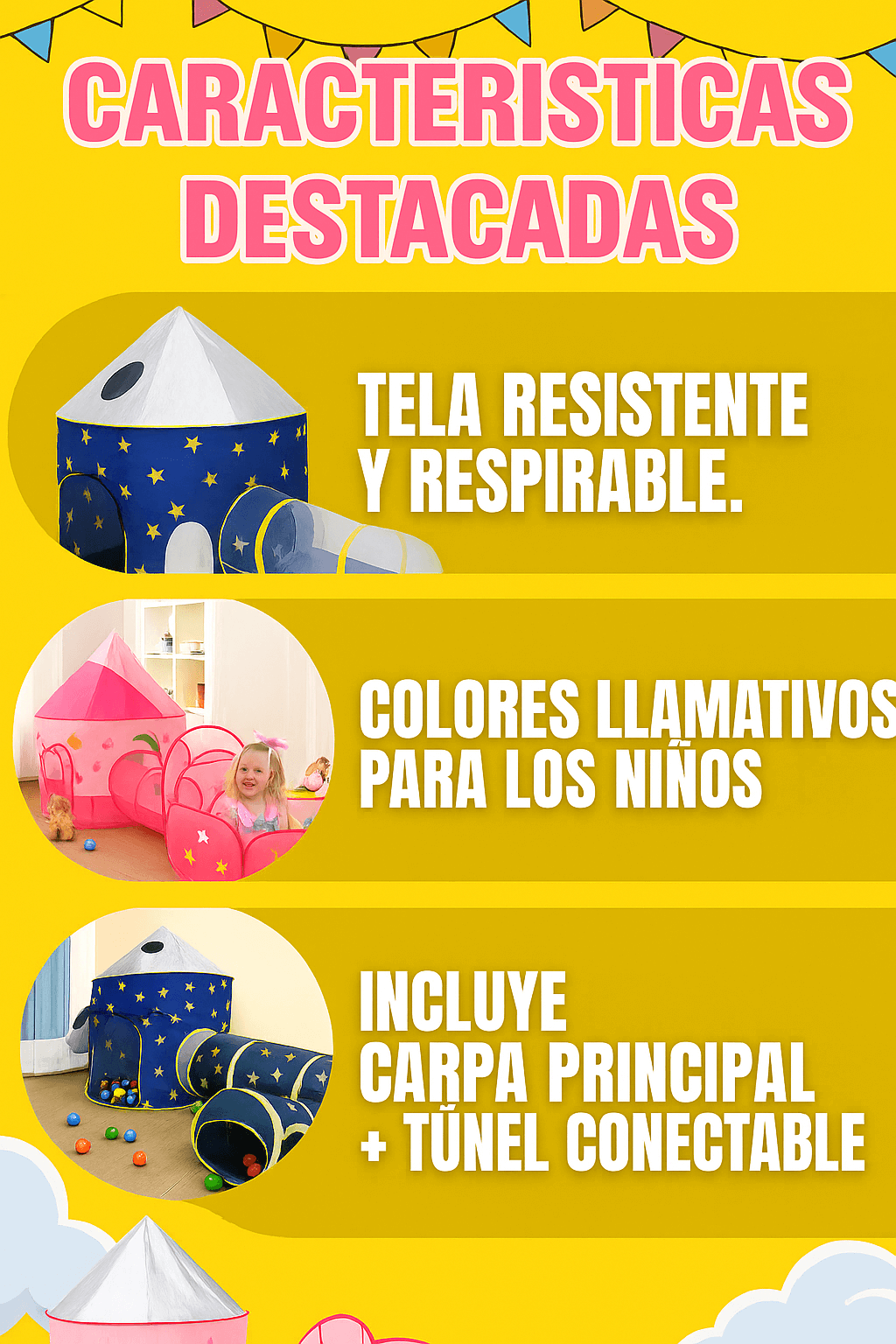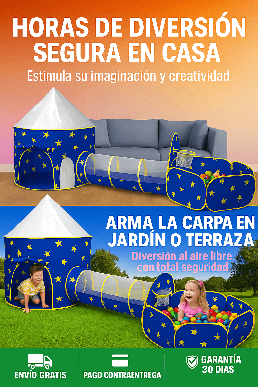 🏰 Diversión completa: carpa + túnel conectable