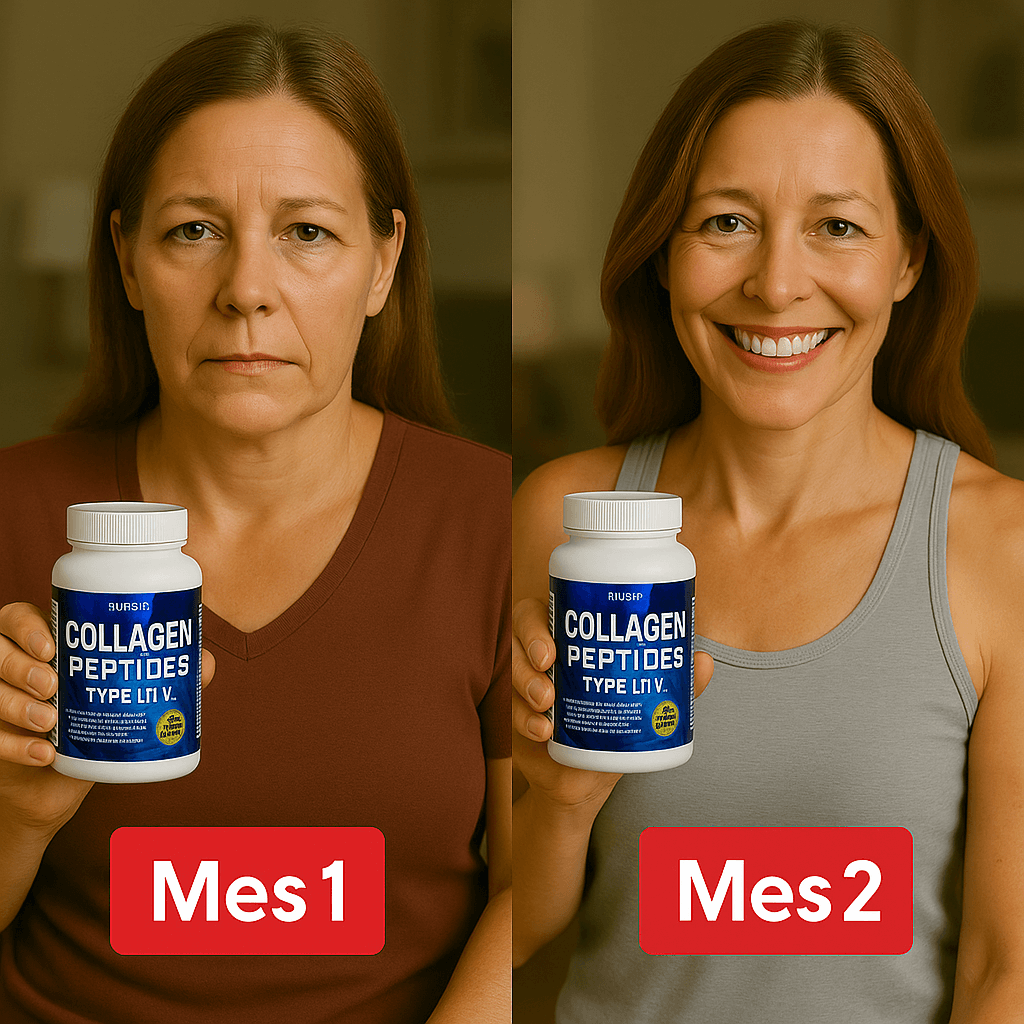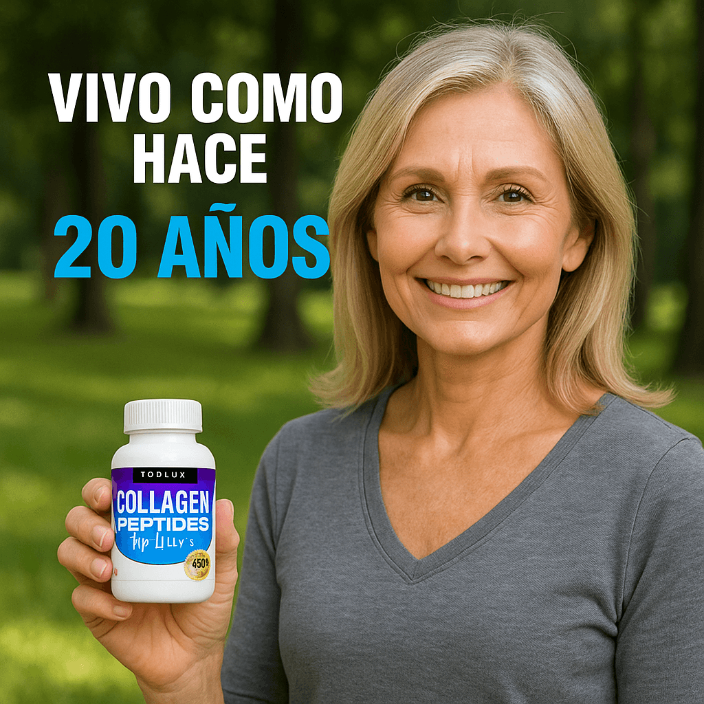 YA PROBASTE CREMAS QUE SOLO TAPAN ARRUGAS Y POLVOS QUE PROMETEN MILAGROS. NINGUNO DETIENE EL DOLOR EN TUS RODILLAS NI DEVUELVE LA FIRMEZA A TU PIEL. ESTE COLÁGENO SÍ: RECOMPONE LO QUE EL TIEMPO TE ROBÓ Y TE DEVUELVE JUVENTUD Y MOVILIDAD REAL.
