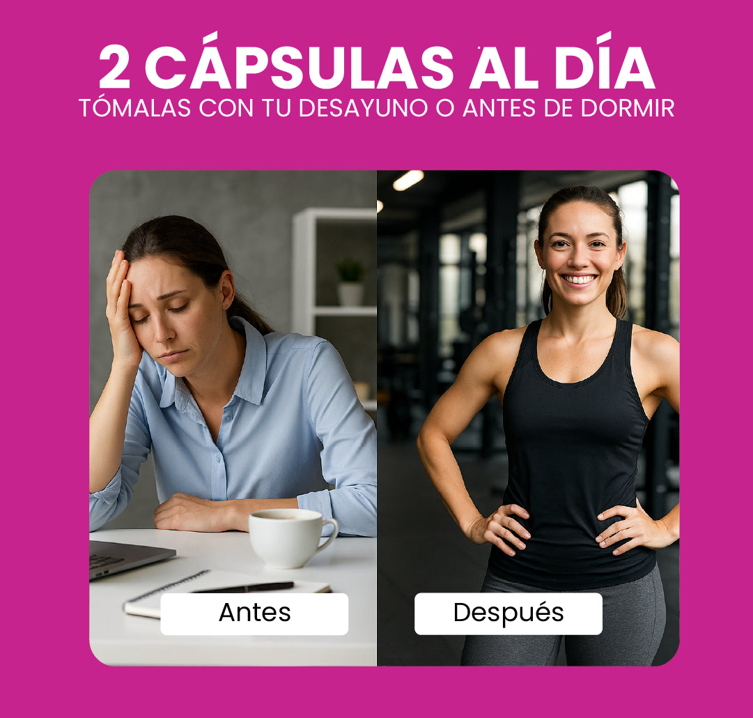 La dosis recomendada es de 2 cápsulas al día acompañadas de agua, preferiblemente antes del desayuno o del almuerzo. Es fácil de incorporar en tu rutina diaria sin complicaciones.