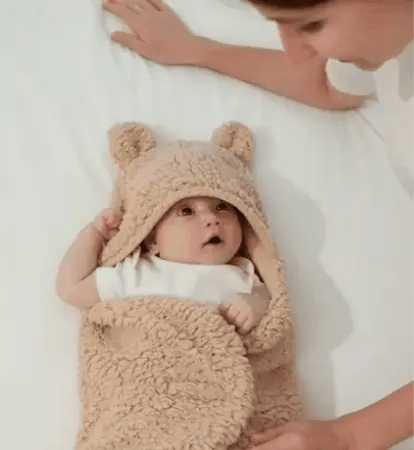 2️⃣ Coloca a tu bebé en el centro del cobertor.