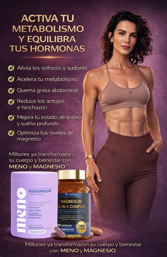 ✅ MENO + MAGNESIO: Regulan tus hormonas, corrige la deficiencia magnesio, estabilizan tu energía, elimina los sofocos, desinflaman tu abdomen y a reactiva el metabolismo lento causado por la menopausia.