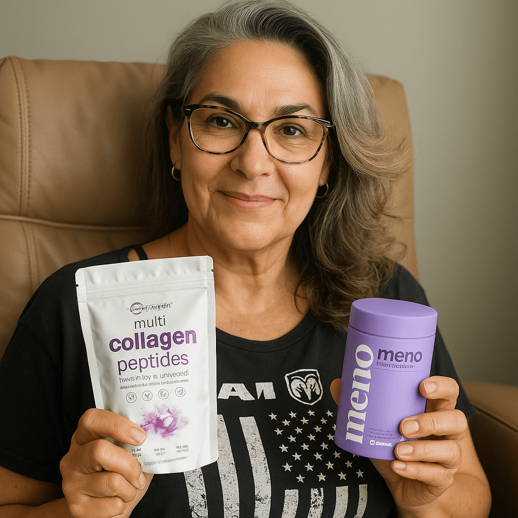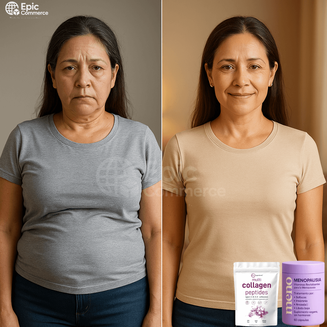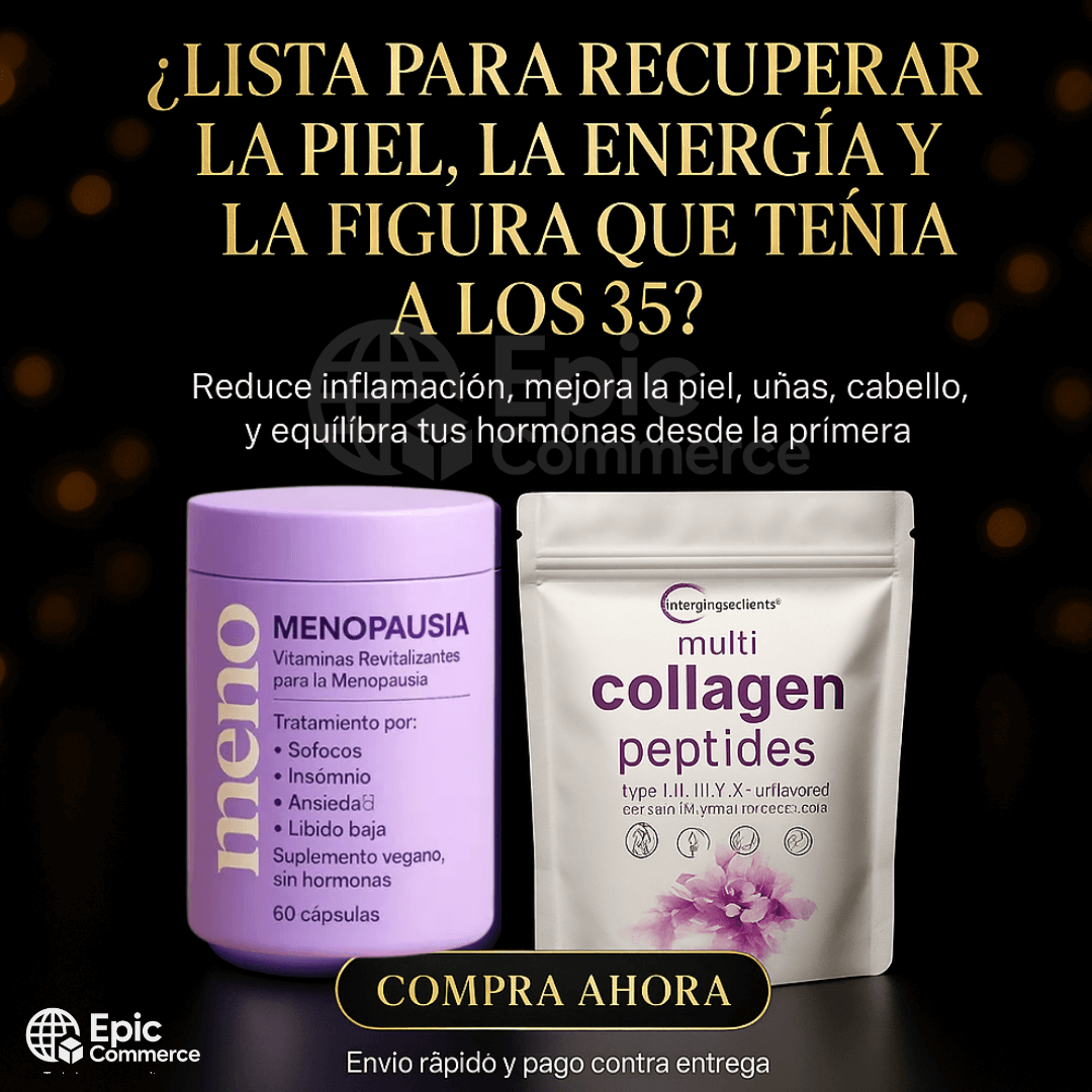 MENO + MULTICOLLAGEN ATAJAN LO QUE TE ESTÁ JODIENDO LA VIDA: HORMONA BAJA + COLÁGENO PERDIDO.