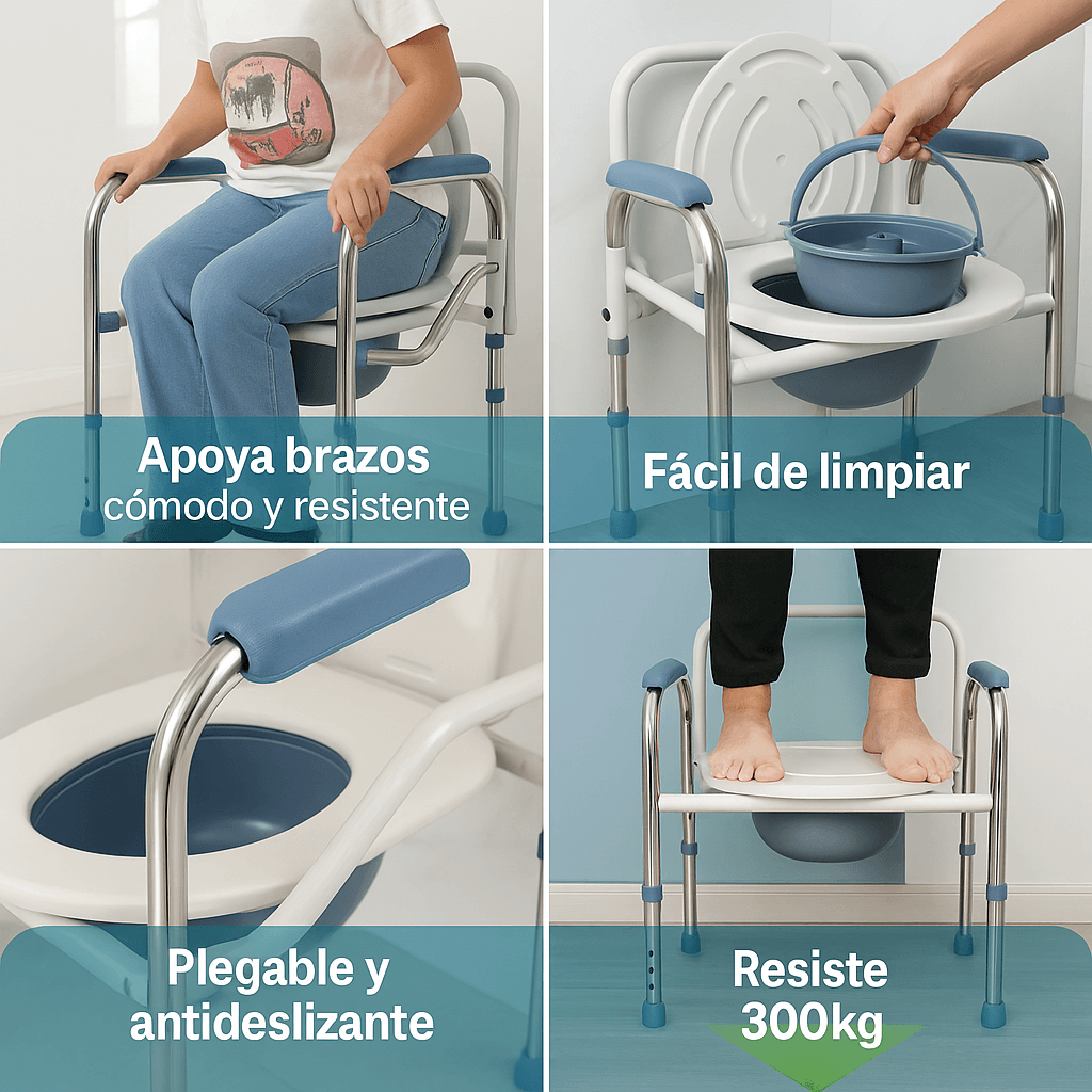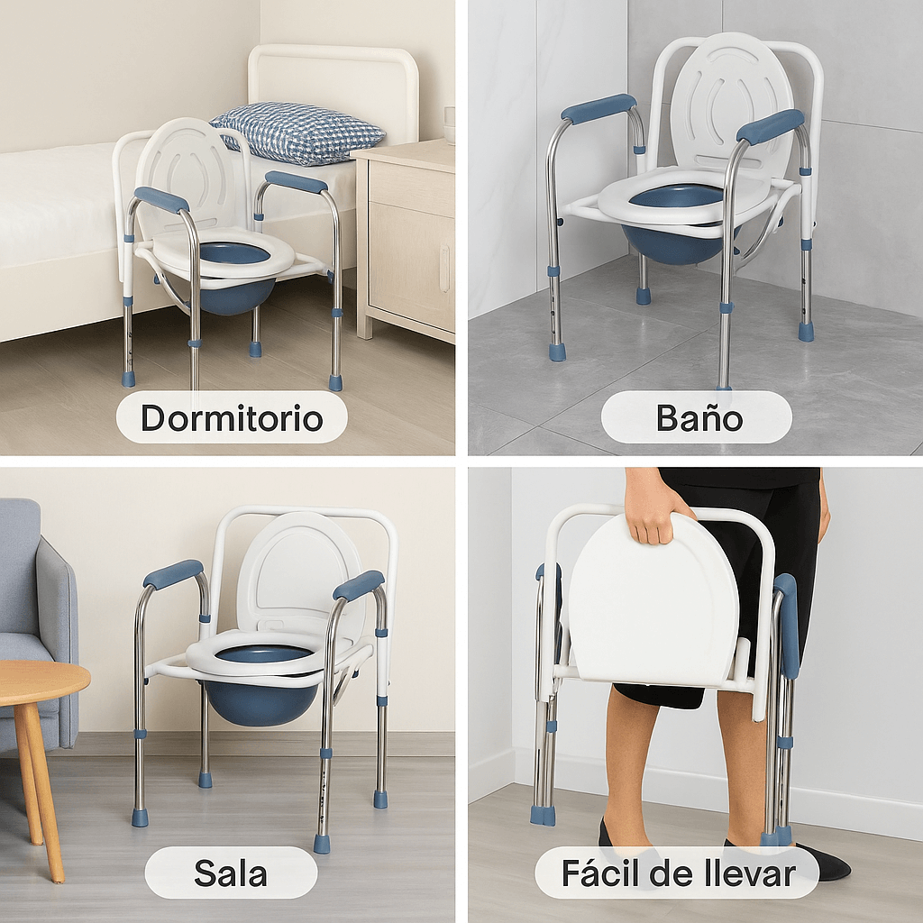 ✅ Con la vasija incluida (bacinica): úsala en el cuarto, sala o cualquier espacio donde necesites, sin tener que desplazarte hasta el baño.