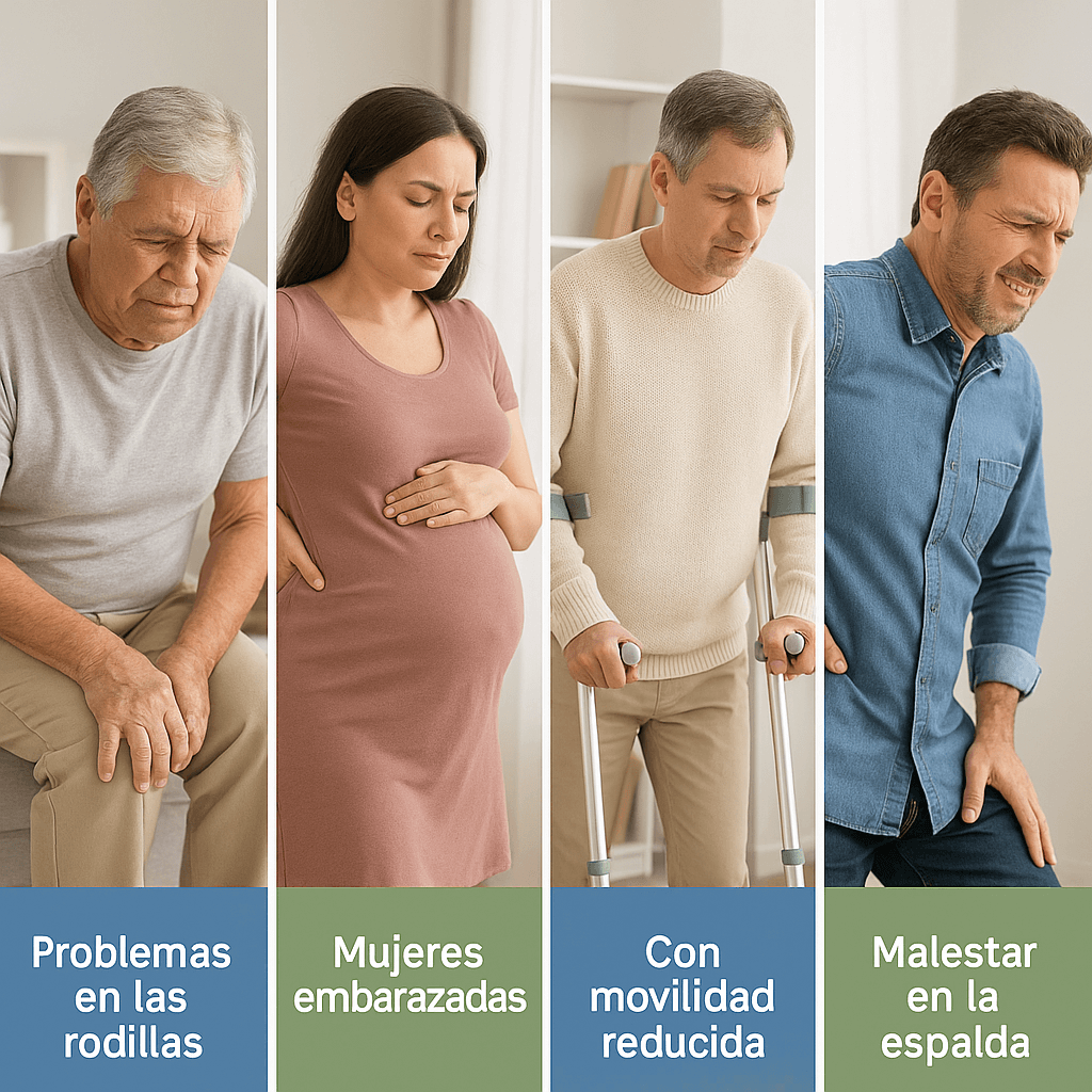 o levantarse, reduciendo dolor en rodillas y espalda.